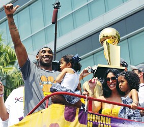 北京時(shí)間今晨,湖人第15次冠軍游行,在洛杉磯市中心盛大舉行,從斯臺(tái)普斯中心到大體育館,一路上,球迷身著紫金戰(zhàn)袍,臉上畫著油彩,高舉雙臂,祝賀湖人凱旋。