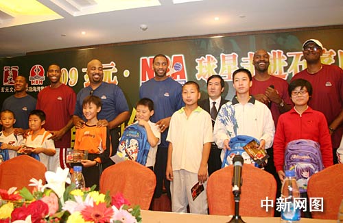 中新網(wǎng)石家莊9月1日電 (記者 艾廣德)繼戴維斯、卡爾德隆上月亮相石家莊后,河北的籃球迷們今天又迎來麥蒂領(lǐng)銜的十位NBA球星,不過這次球星們是來獻(xiàn)愛心的。