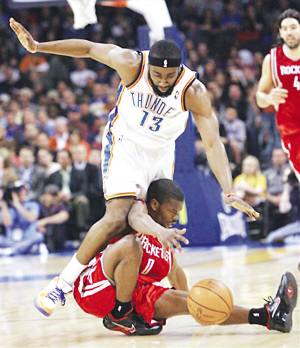 在剛剛加盟火箭隊的06-07賽季,“暴力扣將”斯威夫特有一天在家里休息,飛來一只蒼蠅飛到他的眼睛上,他用粗大的手指去揉眼睛,結果給揉出了結膜炎被迫缺席了9場比賽,據(jù)說用手指揉眼睛發(fā)生結膜炎的概率是百萬分之一。