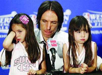 在賽后的發(fā)布會上,納什兩個可愛的女兒也出現(xiàn)在了現(xiàn)場,聽到爸爸的一番辛酸言論,兩個女兒當場落淚,而看到女兒落淚,納什再也控制不住自己的情緒,流下了兩行悲壯的英雄淚。(金鑫)