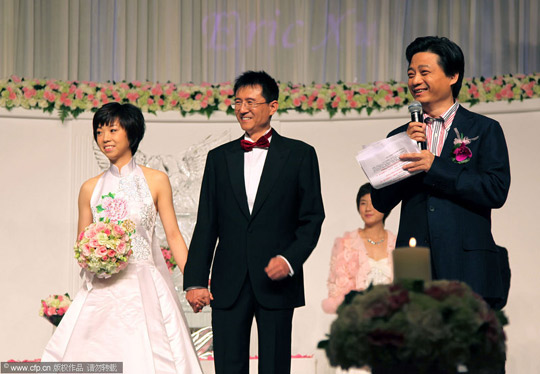 對于大多數(shù)體育迷來說,人們最關(guān)心的就是乒壇一姐究竟嫁了一個什么樣的人。此前,關(guān)于張怡寧丈夫的各種信息和說法真假難辨,而昨天的婚禮上,這位神秘人物終于曝光了,他與張怡寧之間的緣分,還是體操王子李寧牽的紅線。不過處事十分低調(diào)的新郎徐威將所有媒體都拒之門外。