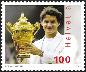 2007年4月,打破康納斯連續(xù)160周排名第一的世界紀錄之后,費德勒家鄉(xiāng)的瑞士郵政局就發(fā)行了一套以“費德勒”名字命名的郵票,嘉獎他為國家所取得的榮譽,他也因此成為首位在世就“登上”瑞士郵票的人。