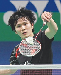 田見賢一將在今天的決賽中對陣世界排名第一的馬來西亞高手李宗偉。 (忻華)