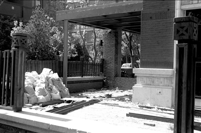 據(jù)小區(qū)物業(yè)的一名負(fù)責(zé)人介紹,2008年,前乒乓球世界冠軍劉偉在該小區(qū)尚園×號(hào)樓×單元1028室辦理入住手續(xù),并開(kāi)始進(jìn)行室內(nèi)裝修。今年4月,幾名工人來(lái)到1028室,開(kāi)始對(duì)外墻進(jìn)行整修。物業(yè)見(jiàn)此這種情況前去詢(xún)問(wèn),得知業(yè)主要在緊鄰樓層的小花園內(nèi)搭建一座20多平方米的二層建筑。他們立即和業(yè)主進(jìn)行協(xié)商,但沒(méi)有結(jié)果。本月14日,又有一批工人過(guò)來(lái),不聽(tīng)勸阻繼續(xù)施工。