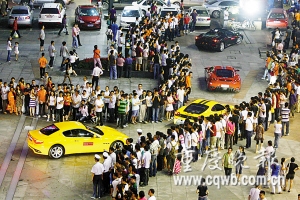 繼前兩天分別在成南高速和成灌高速爆出飆車(chē)嫌疑之后,在川渝兩地名噪一時(shí)的法拉利豪車(chē)隊(duì)昨天(7日)上午在成都金港賽道集體亮相。賽場(chǎng)被車(chē)隊(duì)全場(chǎng)全天包斷,記者以及追捧豪車(chē)的眾多成都車(chē)迷悉數(shù)被拒之門(mén)外,連最外側(cè)的看臺(tái)也被清場(chǎng)。