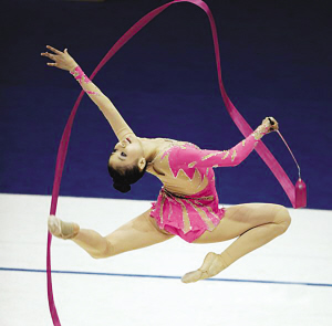 藝術體操最講究的是身體的柔軟度,這需要從小塑造。四五歲的小女孩經(jīng)常練的一個動作,就是前后腿架在凳子上,讓屁股騰空,至少堅持10分鐘以上,一天則要反復幾次。周怡說:“這個真的很難,很苦。”