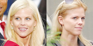 艾琳是一個標(biāo)準(zhǔn)的金發(fā)美女,來自瑞典的她曾經(jīng)當(dāng)過模特,容貌可以用光彩照人來形容?墒亲罱囊粡堈掌瑓s顯示,她似乎蒼老了很多。在這張照片中,艾琳露出了少有的笑容。即便如此,她仍然無法掩飾自己的黑眼圈和正在擴(kuò)張的眼袋。很顯然,老虎伍茲的性丑聞給她造成了太多心理負(fù)擔(dān),讓她心力憔悴,才給狗仔隊留下這樣一副“尊容”! ∧ 易
