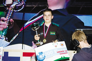 的確,年紀(jì)輕輕,布雷切爾就已經(jīng)擁有了不少榮譽(yù)。2009年4月的U19歐錦賽布雷切爾奪冠,成為了歷史上最年輕的冠軍。他曾經(jīng)在2007-2009年三次獲得比利時(shí)U16錦標(biāo)賽冠軍、08、09年兩次獲得U21錦標(biāo)賽冠軍。這個(gè)被譽(yù)為當(dāng)今球壇最有潛力新星的天才少年已經(jīng)火爆youtube,他在訓(xùn)練中打出147的視頻也被無(wú)數(shù)人觀看評(píng)論,如今他的第54個(gè)滿分桿也成為網(wǎng)絡(luò)上最火爆的視頻之一。雖然在練習(xí)中打出147不足為怪,但是布雷切爾作為一名14歲的非職業(yè)選手,的確難能可貴。