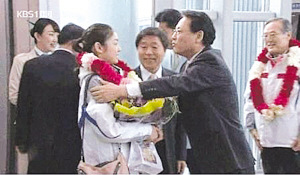 據(jù)悉,本月2日,溫哥華冬奧會韓國代表團(tuán)回國之時,韓國文化部長柳仁存親自到仁川機(jī)場迎接。在此期間,KBS一直負(fù)責(zé)整個過程的錄制過程,柳仁存部長被拍到在給金妍兒佩戴花環(huán)時,曾試圖擁抱金妍兒,但金妍兒顯然對這一舉動比較介意,有意地向后退縮,但柳部長仍強(qiáng)行兩手抱住金妍兒,表情更是有些“猥瑣”。