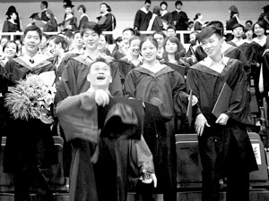 “最近幾年,我碩士班畢業(yè)推遲,留學(xué)放棄,生孩子計劃推遲,都是為了2008年奧運會,可惜也沒參加上!被貞浧鸾鼛啄甑膴^斗史,老張感慨頗多,“不過今天參加畢業(yè)典禮還是很幸福,也很滿足!