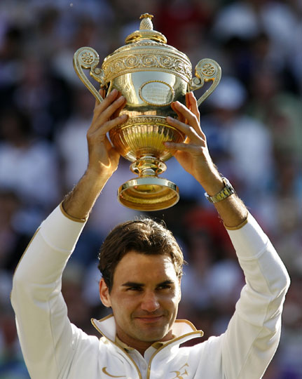 中新網(wǎng)7月6日電 今天凌晨,2009年溫布爾登網(wǎng)球公開(kāi)賽的壓軸大戲——男單冠軍爭(zhēng)奪戰(zhàn)終于落幕,天王費(fèi)德勒與羅迪克苦戰(zhàn)四個(gè)多小時(shí),最終瑞士人以3比2險(xiǎn)勝,五局比分為5比7、7比6、7比6、3比6、16比14,同時(shí)費(fèi)德勒也以15座大滿貫單打冠軍的紀(jì)錄超越桑普拉斯,成為網(wǎng)球史上最偉大的一位冠軍。