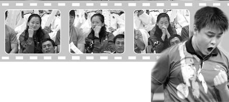 開賽后,王皓很快2:0領(lǐng)先,彭陸洋看得興高采烈。沒想到,馬琳迅速調(diào)整了狀態(tài),連追兩局。第五局,王皓8:10落后,彭陸洋嚇得閉上了眼睛,不敢看比賽。過了好一會(huì)兒,她才睜開眼睛,當(dāng)?shù)弥杏演斍蚝,顯得非常難過。