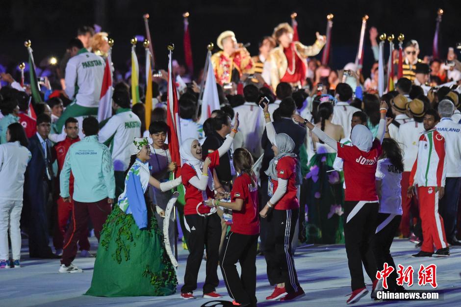 4日晚,亞奧理事會主席艾哈邁德·法赫德·薩巴赫親王宣布第十七屆亞運(yùn)會閉幕,燃燒了16天的亞運(yùn)圣火在韓國仁川的主體育場熄滅。韓國總理鄭烘原和朝鮮高級代表團(tuán)成員出席了當(dāng)晚的開幕式。