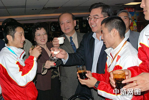 慶功會(huì)自始自終洋溢著喜慶熱烈的氣氛。在慶功會(huì)上,僑胞代表們紛紛與金牌獲得者鄒市明、銅牌獲得者李洋、哈那提斯拉木、尼加提玉山、張志磊等運(yùn)動(dòng)員們合影留念,賓主頻頻舉杯共祝2008年再創(chuàng)輝煌。