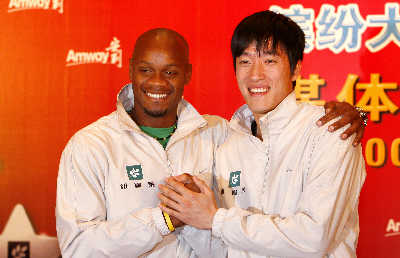 劉翔,奧運(yùn)會(huì)和世錦賽110米欄雙料冠軍,世界紀(jì)錄保持者;阿薩法·鮑威爾,100米世界紀(jì)錄保持者,被稱(chēng)為這個(gè)世界跑得最快的人。當(dāng)這世界兩大飛人相遇會(huì)擦出怎樣的火花呢?昨日,在安利舉行的媒體見(jiàn)面會(huì)上,一同亮相的劉翔與鮑威爾就侃侃而談,言語(yǔ)間彼此都惺惺相惜。