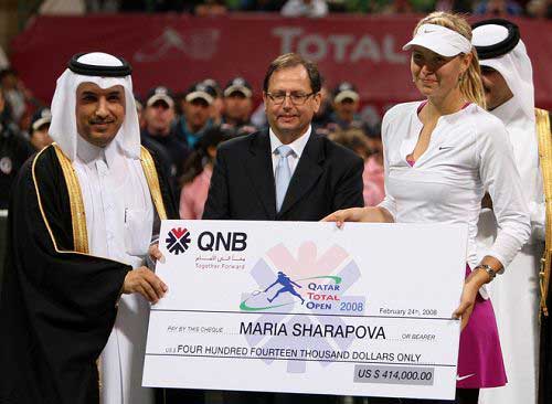 總獎金250萬美元的WTA一級大賽多哈公開賽冠軍周一凌晨成為俄羅斯美少女莎拉波娃最新的戰(zhàn)利品,她在決賽中擊敗同胞茲維娜列娃,將自己今年的連勝紀(jì)錄擴(kuò)大到14場。