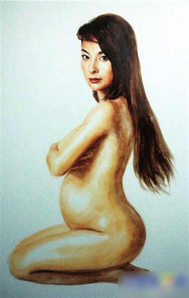 郭晶晶“懷孕”油畫。