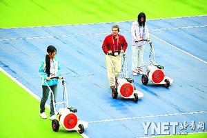 遲大衛(wèi)說,今年在中網(wǎng)賽場中待命的24臺(tái)吹水機(jī),全部都經(jīng)過了北京奧運(yùn)會(huì)的“鍛煉”,“這些機(jī)器是今年中網(wǎng)新購置的賽場設(shè)備,它們首先在奧運(yùn)賽場使用之后,才進(jìn)入中網(wǎng)賽場。奧運(yùn)會(huì)期間,這些機(jī)器在奧運(yùn)網(wǎng)球場地工作人員的正確使用下,幫助一小時(shí)內(nèi)重啟比賽。特別是奧運(yùn)會(huì)第一天就下了大雨,但是這些吹水機(jī)很好地解決了問題!边t大衛(wèi)說,“今年中網(wǎng)這些機(jī)器繼續(xù)‘服役’,志愿者使用起來很熟練,因?yàn)樗麄冎耙呀?jīng)逐步掌握了使用要領(lǐng)!