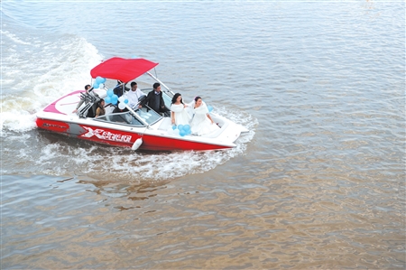 隨后,新郎牽著新娘的手,雙雙登上游艇。新郎正是四川激流回旋隊(duì)教練陳勇,新娘則是奧運(yùn)帆板冠軍殷劍。昨日,這對幸福的新人,在現(xiàn)場近千人的祝福聲中步入了婚姻的殿堂。自此,享譽(yù)世界的帆板奧運(yùn)冠軍也有了自己幸福的港灣。