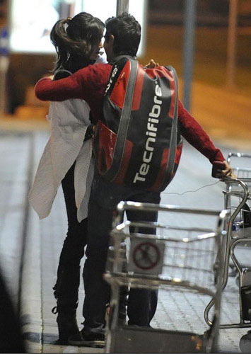 據(jù)西班牙媒體報道,自從塞爾維亞美少女伊萬諾維奇和西班牙帥哥沃達斯科的戀情曝光后,就成為網(wǎng)壇關(guān)注的焦點。這對墜入愛河的金童玉女日前又被狗仔隊拍到在機場吻別的畫面。在機場,這對小情人旁若無人的熱吻,片刻也不愿分離。