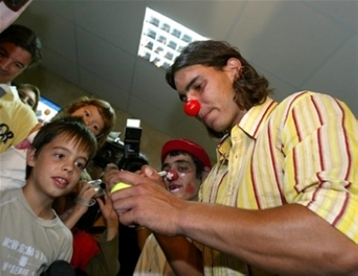 一向熱心公益的納達(dá)爾,很喜歡與孩子們玩樂。四年前,納達(dá)爾就在馬洛卡杜雷塔醫(yī)院扮作小丑安慰受到病痛折磨的孩子們。西班牙RTVE電視臺(tái)稱,這是孩子們令人難忘的經(jīng)歷,“從他們驚訝的面部表情當(dāng)中就可以看出,對(duì)于世界第一的網(wǎng)球選手能親自來給他們講童話,是多么難以置信!逼鋵(shí),一向喜歡看動(dòng)畫、玩PS2游戲的納達(dá)爾在場(chǎng)外就是個(gè)長不大的孩子。這個(gè)漫畫《七龍珠》的忠實(shí)擁躉,出外比賽旅行時(shí)也總帶著《七龍珠》的DVD,所以講起童話來也頭頭是道!捌鋵(shí)我不大會(huì)唱歌,相反為孩子們將故事是件不錯(cuò)的工作!奔{達(dá)爾坦言。