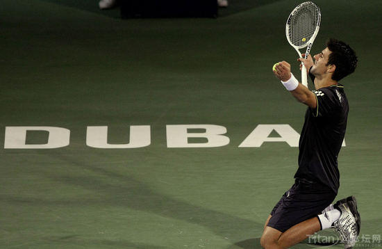 北京時(shí)間2009年3月1日凌晨(迪拜當(dāng)?shù)貢r(shí)間2月28日),總獎(jiǎng)金為200萬美元的迪拜網(wǎng)球公開賽落幕。頭號種子、現(xiàn)世界排名第3位的德約科維奇直落兩盤以7比5、6比3完勝了4號種子、西班牙選手費(fèi)雷爾。這樣,德約科維奇就獲得自己新賽季的首個(gè)ATP賽事的桂冠,這個(gè)冠軍將幫助他一掃新賽季低迷狀態(tài)的陰霾,他在積分榜上領(lǐng)先穆雷的優(yōu)勢也進(jìn)一步拉大。