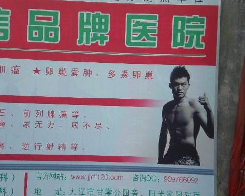 在某醫(yī)院的宣傳巨型海報中,一身健碩肌肉的林丹和一位不知名的女子分列兩邊,林丹的肖像旁全是宣傳男科疾病和性病治療的。林丹的熱心球迷表示,林丹的這張性感照片是早前為《時尚健康》雜志拍攝的封面寫真,并非為該醫(yī)院專門拍攝的,所以這極有可能又是一則盜用林丹肖像的“山寨廣告”。