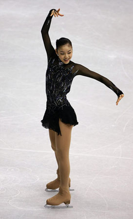 這樣,金妍兒再次刷新了自己在上月舉行的四大洲錦標賽上創(chuàng)下的72.24分短節(jié)目歷史最高成績。金妍兒伴隨著《死亡之舞》的優(yōu)美旋律進行了幻想般的表演,表演結束后,全場觀眾都起立為她鼓掌。