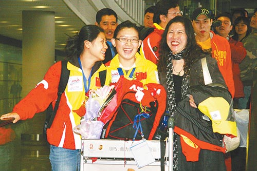 中國女子冰壺隊昨天在韓國奪得世錦賽冠軍的消息在國內(nèi)引起了轟動。今天下午,當她們從韓國飛抵北京首都機場后,數(shù)十名守候的記者把她們團團圍住,一向很少有人關注的中國冰壺姑娘面對大堆相機和話筒,感到受寵若驚,在賽場上以沉著冷靜著稱的隊長王冰玉,在這一刻也激動得說不出話來。