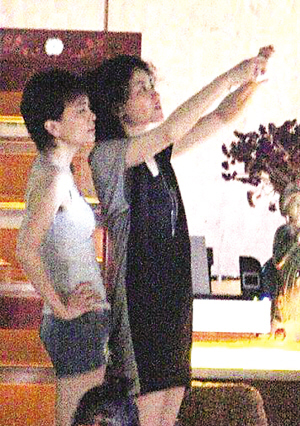 日前,記者在北京工體附近酒吧遇到某劇組正在拍戲,圍觀群眾議論紛紛“王菲來了,她老公也在!還有徐靜蕾!”原來是張一白導(dǎo)演的電影版《將愛情進(jìn)行到底》,劇組在酒吧拍攝一場聚會(huì)的戲。當(dāng)天正好拍攝李亞鵬和徐靜蕾一場擁抱的內(nèi)容,由于二人的性格比較靦腆,原本一場簡單的戲份反復(fù)拍攝多次,這時(shí)記者在人群中意外地發(fā)現(xiàn)了王菲的身影,身著黑色連衣裙打扮十分樸素。王菲不但在一旁觀看并且拿著手機(jī)拍攝視頻,邊拍邊和李亞鵬的經(jīng)紀(jì)人馬葭在說著什么。一個(gè)小時(shí)后,劇組終于有了一段較長時(shí)間的休息,李亞鵬快步走到王菲身邊,與妻子聊了起來。開始兩人只是默默站著,不一會(huì),王菲就小鳥依人般地靠在李亞鵬身邊慢慢坐了下來,牽起了老公的手,片場秀起了恩愛。