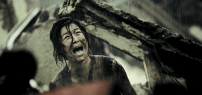 以唐山為題,觀眾自然也關注地震戲拍得怎么樣,就特技而言應該說馮小剛交出了一篇不錯的答卷。影片開篇的唐山大地震場面拍得驚心動魄,3分鐘內,觀眾剛體會到四口之家的溫馨,馬上就見證了地獄般的滅城,地陷、屋塌和震后的哀鴻遍野,這段戲結合置景搭建和電腦特效,有小細節(jié)的真實質感,也有大場面的壯觀殘酷,拿出來跟《2012》比都不算失禮。此段戲后,徐帆一句凄厲的“老天爺,你個王八蛋!”成為觀眾的首個情緒迸發(fā)點,場內抽泣聲此起彼伏。