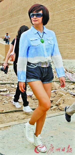 在將近三個小時的參觀過程中,劉曉慶也成為了乾陵一道風(fēng)景線。當(dāng)劉曉慶一身熱辣的運動裝出現(xiàn)在大家面前時,不少人都驚呼,“還是一副少女的感覺!彼倪\動裝配以黑色超短裙,半截黑絲襪做點綴,還是顯出了比較清純的氣息。對此,劉曉慶回答道:“我風(fēng)格比較多,愛好也比較多,今天因為要走很多路,所以是這樣的裝扮。不知道今天會有媒體到場,不然我一定要好好打扮一番,不要素顏。”