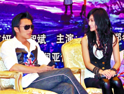 昨日,武俠偶像劇《劍俠情緣——藏劍山莊》在京舉行了開機發(fā)布會!断蓜ζ?zhèn)b傳》的導演馮伯源協(xié)同吳亞橋聯(lián)合指導、主演謝霆鋒、阿Sa、吳亞橋、鄭希怡、關(guān)智斌等主演到場。謝霆鋒、阿Sa這對熒屏情侶此次卻出演了一對冤家,阿Sa在劇中要經(jīng)常受到謝霆鋒的捉弄。阿Sa笑言,這才是兩人在生活中的真實關(guān)系,而謝霆鋒則表示,“其實捉弄她很容易,一點都不難”。