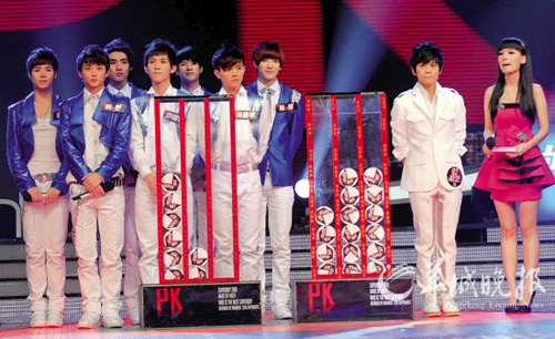 上周五晚,第一次正式加入今年“快男”全國(guó)總決賽的8090組合,在“快樂(lè)天團(tuán)8090踢館夜”直播中,上演了一場(chǎng)讓人看不懂的“踢館賽”。成立剛一個(gè)星期的8090組合,在演唱了兩首歌后便被頗受爭(zhēng)議的“人氣王”武藝淘汰出局,使得他們的“快男”之路迅速告終。今年“快男”飽受非議的賽制再一次成為批評(píng)的焦點(diǎn),著名的神秘“舞美師”更直斥導(dǎo)演團(tuán)隊(duì)要?dú)У艉闲l(wèi)視的選秀王牌。