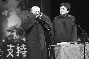 演出在當(dāng)晚7:30左右開場,郭德綱和于謙都身穿傳統(tǒng)長衫出場,笑容滿面,開場白是:“感謝在座的衣食父母!比珗稣坡曧懫。在當(dāng)晚演出中,郭德綱和于謙一共說了四段經(jīng)典作品,并且在觀眾一再要求下,返場了五次。郭德綱一向擅長拿真實事件“砸掛”。在返場中,郭德綱就用“保羅”和于謙父親串聯(lián)了起來,讓現(xiàn)場笑聲不止。除了郭德綱和于謙二人的表演,在近3小時的整場演出中,還有多名弟子上臺演出,但并無知名度較高的弟子出現(xiàn)。演出結(jié)束后,一群“綱絲”仍舊不愿離場,留在門口想與郭德綱合影簽名,并且打出橫幅支持郭德綱。面對觀眾如此熱情,郭德綱也是感慨道,“我能力有限,就會說個相聲,只要大家喜歡,我們就愿意給大家?guī)砜鞓!睋?jù)了解,本場演出所有低票價已經(jīng)在一周之前全部售出,而最高門票也是所剩無幾。在離開場還有一個鐘頭的時候,黃牛黨都聚集在售票處,但并不是出售門票,而是收門票。當(dāng)記者向黃牛黨打聽票價時,得到的回答只有“沒票,你有票賣嗎?”(王少文)