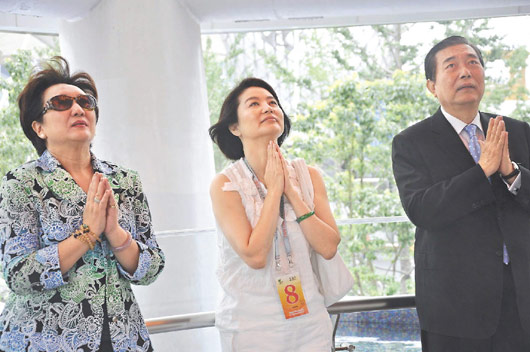 上海世博會(huì)開(kāi)幕以來(lái),臺(tái)灣館備受各界稱贊,昨天更出現(xiàn)2位來(lái)自臺(tái)灣的大明星,久違熒光幕的林青霞,在昔日影壇好友女星楊惠姍、導(dǎo)演張毅陪同下,參觀臺(tái)灣館,吸引場(chǎng)內(nèi)場(chǎng)外廣大粉絲的目光。