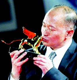 儀式正式開始后,電影宮首先播放了一段節(jié)奏明快的短片,將吳宇森從影數(shù)十年拍攝電影的精彩鏡頭剪輯在一起。徐克現(xiàn)場改編了他與吳宇森合作的經(jīng)典作品《英雄本色》里的臺詞來向吳宇森致敬,“我要爭一口氣,不是想證明我了不起,我是想告訴人家,我只想得到我應該得到的東西。”隨后吳宇森上臺,接過閃閃發(fā)光的金獅獎杯,他眼含淚光,連連鞠躬致意。在致辭中他對所有支持他、幫助他的親朋好友致以誠摯謝意:“小時候電影只是我的一個瘋狂夢想,沒想到如今卻成為現(xiàn)實,我是個幸運的人……母親的話常在我耳畔響起,如果堅信某事,就要堅持到底! (小魚)