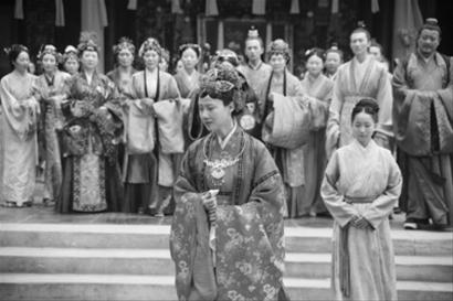 新版《紅樓夢》中還有一個大場面——“可卿喪禮”,規(guī)格絲毫不次于“元妃省親”的花費,單是停靈就用了49天,“寧國府街上一條白漫漫人來人往,花簇簇官去官來”,加上數(shù)十位僧道日夜超度,薛蟠送來的、無人敢擅用的檣木棺,還有瑞珠殉葬,秦可卿的喪禮一時間有了親王級別的排場,引得賈政等人連連搖頭。而這場戲拍攝得也極為仔細,為符合原著基本精神,遵照當時的禮儀規(guī)矩,賈府一應女眷均處在一個白幃子里。