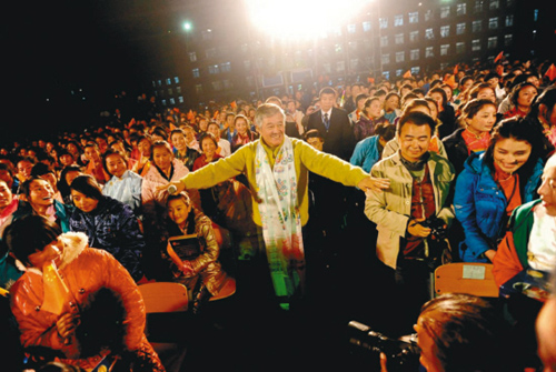 對于不常走入校園的小沈陽來說,看到這么多學(xué)生,尤其是來自青海玉樹災(zāi)區(qū)的藏族學(xué)生,非常興奮。他在現(xiàn)場認真地教藏族學(xué)生們唱《我叫小沈陽》,字斟句酌,還真像個老師樣。一名學(xué)生表示:“《我叫小沈陽》這首歌以前曾多次聽過,但從未面對面見過小沈陽,這回算是見到真的了,見到‘活’的啦!”