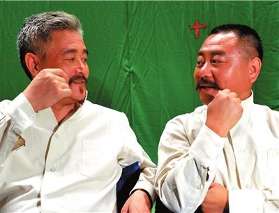 趙本山(左)和范偉在拍攝現(xiàn)場交談。張偉攝