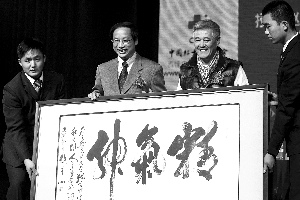 昨日,趙本山受聘成為中國(guó)紅十字基金會(huì)“溫暖大使”。在簽約儀式上,趙本山表示,從2011年開始,個(gè)人所有的商業(yè)演出收入都將捐給中國(guó)紅十字基金會(huì)。此外,他還向中國(guó)紅十字基金會(huì)捐贈(zèng)一幅名為“精氣神”的書法作品,中國(guó)紅十字基金會(huì)秘書長(zhǎng)王汝鵬(左二)代為接受,雙方商定這件作品將于11月4日在“2010馬拉多納溫暖中國(guó)行”的慈善嘉年華晚會(huì)上進(jìn)行拍賣,拍賣所得用于建立溫暖中國(guó)行動(dòng)定點(diǎn)醫(yī)院和貧困腫瘤患者的救治。中國(guó)紅基會(huì)2006年10月發(fā)起“溫暖中國(guó)——貧困腫瘤患者救治行動(dòng)”,旨在通過(guò)捐贈(zèng)癌癥治療設(shè)備、在全國(guó)各地建立一批定點(diǎn)醫(yī)院的方式,長(zhǎng)期為貧困家庭的腫瘤患者提供免費(fèi)救治。本報(bào)記者 吳江 底東娜 勾伊娜 攝影報(bào)道