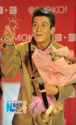 陳冠希10月28日在北京參加商業(yè)活動,他獲贈大捧鮮花人氣依舊居高不下,現(xiàn)場獻唱時他額頭冒青筋,拼命哄歌迷挽救人氣。還不忘大談與女友戀情自我炒作,并稱自己從未說出過退出或者離開娛樂圈。