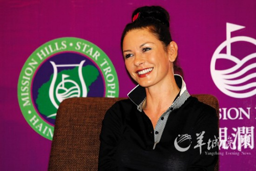 在昨日出席比賽的眾多明星中,好萊塢女星凱瑟琳·澤塔·瓊斯無疑是最受媒體關(guān)注的一個(gè)。瓊斯與丈夫邁克·道格拉斯都是高爾夫球達(dá)人,對于兩人的球技較量,凱瑟琳謙虛地說:“丈夫比我打得好多了,不過我打球的姿勢比他好看!”