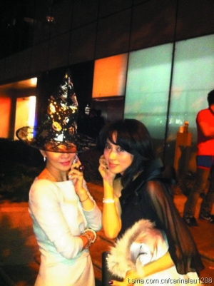 梁朝偉連日來在內(nèi)地開平拍王家衛(wèi)的《一代宗師》,已經(jīng)很久沒有機(jī)會(huì)和老婆劉嘉玲一同出現(xiàn),難得嘉玲不愁寂寞,經(jīng)常飛來飛去出席不同的活動(dòng),除了現(xiàn)身王菲演唱會(huì)后臺(tái),日前她又應(yīng)邀到上海國(guó)際金融中心,為某品牌專門店剪彩。適逢萬圣節(jié),她把和好友相聚的相片貼上微博,穿上白色衫頭戴巫婆帽,跟好友拍照之余不忘講電話,不知電話中的是否老公梁朝偉呢?