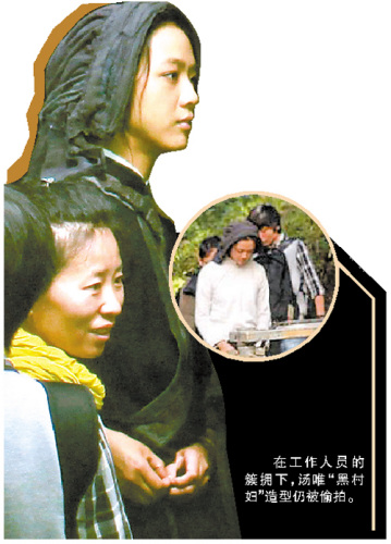 在云南騰沖低調(diào)拍攝的《武俠》日前遭到偷拍,女主角湯唯“黑村婦”造型被曝光。