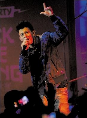冠希唱起歌來酷勁十足。本報(bào)記者 王儉 攝