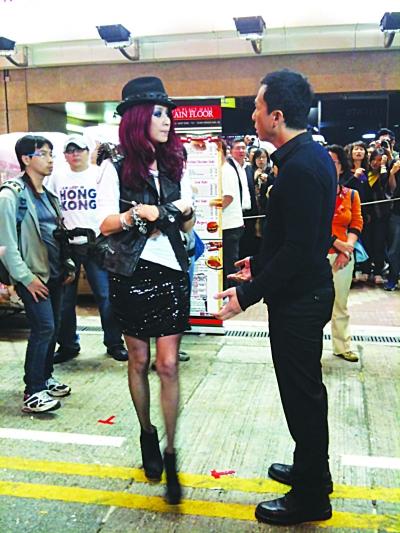 《最強(qiáng)囍事2011》周三晚先是包下港島渣甸山的一家餐廳,拍攝甄子丹與劉嘉玲的重頭感情戲碼,當(dāng)晚,劉嘉玲身穿粉色禮服裙,頗有幾分艷麗。待劇組準(zhǔn)備完畢后,劉嘉玲突然身穿深藍(lán)空姐制服,頭戴貝雷帽,拎著航空箱一臉冷傲走進(jìn)化妝品商場,驚艷四座,站在柜臺(tái)里的甄子丹也露出驚喜的表情。