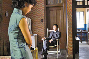 幕后:為了完整重現(xiàn)《色,戒》中30年代場景,李安不惜花了3000萬人民幣在上海搭建了一條完整的“南京西路”,道路兩旁盡是2、3層樓的建筑,共蓋了大小180家商店。據(jù)悉,原著小說中,曾出現(xiàn)店家的陳年照片,李安就根據(jù)這些,再對照真實史料,仔細(xì)考究搭建,就連櫥窗內(nèi)的商品也以真品放置。李安對美工的要求幾乎到了苛刻的地步,連一只杯子都要和當(dāng)年一模一樣。但百密一疏,背景中的高樓影子,本應(yīng)該在后期制作中用電腦刪去,卻疏忽了。