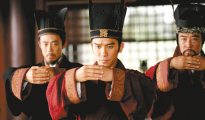 昨日,本報記者拿到一批《赤壁》官方劇照,從劇照上看無論是服裝還是化妝《赤壁》都秉承寫實風(fēng)格,其中金城武扮演的諸葛亮右手握羽扇,左手竟然拿著一只小烏龜,不知這只小龜是否拿來占卜使用?而侯勇扮演的魯肅和連環(huán)畫的形象非常相似,應(yīng)該會得到影迷的肯定。另據(jù)《赤壁》制片張家振透露,金城武所有戲份已全部拍攝完畢,即使在11月17日的火燒烏林橋段有金城武的戲份,也已經(jīng)在10月4日前預(yù)先取鏡完畢,不會使用替身去補拍。