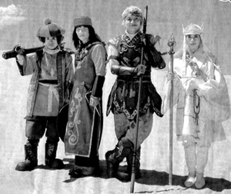 記者了解到,日版電影《西游記》的情節(jié)其實(shí)就是原著中的普通一段——大戰(zhàn)金角大王和銀角大王,但編劇添了一些新的內(nèi)容:師徒四人在取經(jīng)途中遇到某小國(guó)的公主玲美,妖怪金角、銀角兄弟把她的父母變成了烏龜,玲美希望師徒四人幫助自己懲罰妖怪。